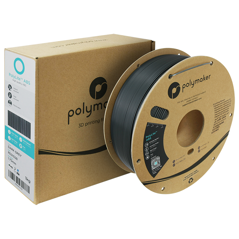 El filamento ABS Dark Grey de la serie PolyLite, desarrollado por Polymaker, es un filamento ABS de alta calidad con un contenido mínimo de partículas finas (COV) para limitar los riesgos de nocividad.