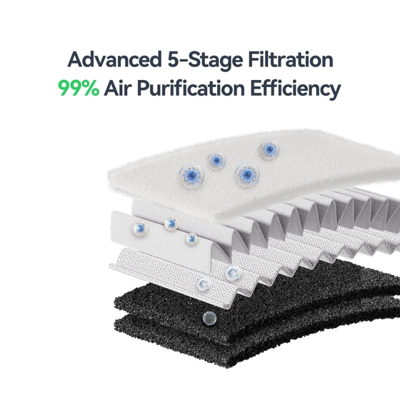 El sistema de filtración multicapa de 5 etapas garantiza una purificación óptima: