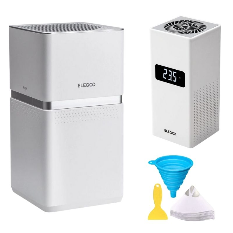 Con la combinación de un mini calentador, purificador de aire y accesorios de filtrado, tienes una solución completa para prolongar la vida útil de tus materiales y obtener resultados consistentes y fiables en cada impresión, de manera segura.