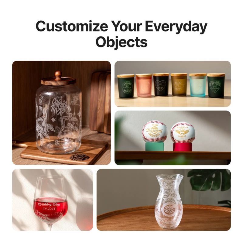 Usado con el xTool P3, este mandril rotativo permite proyectos profesionales variados: botellas, vasos, tazas o piezas técnicas. La precisión de rotación y la estabilidad del agarre aseguran grabados uniformes y limpios, incluso en formas complejas.
