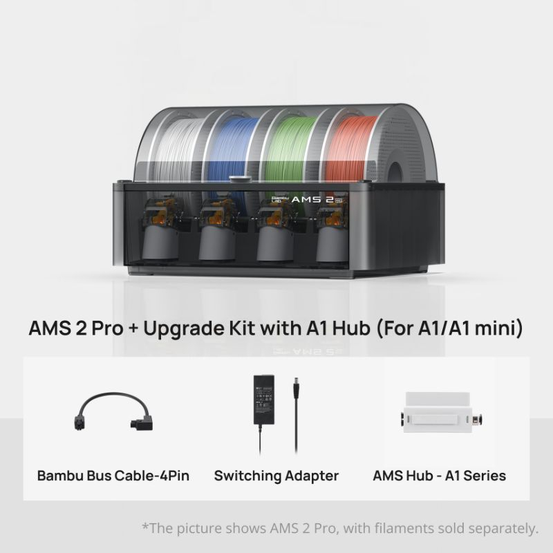 El AMS 2 Pro con kit de actualización está diseñado para la serie Bambu Lab A1. Permite una gestión avanzada y automatizada de filamentos, con almacenamiento seguro contra la humedad y alimentación multicolor fiable. Ideal para impresiones largas y complejas.