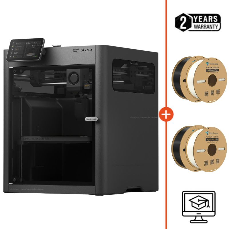 La Bambu Lab X2D es una impresora 3D de doble boquilla diseñada para impresión multimaterial de alto rendimiento y aplicaciones técnicas. Gracias a su cámara calefactada activa, extrusor servo y detección por IA, ofrece una calidad constante y gran fiabilidad.