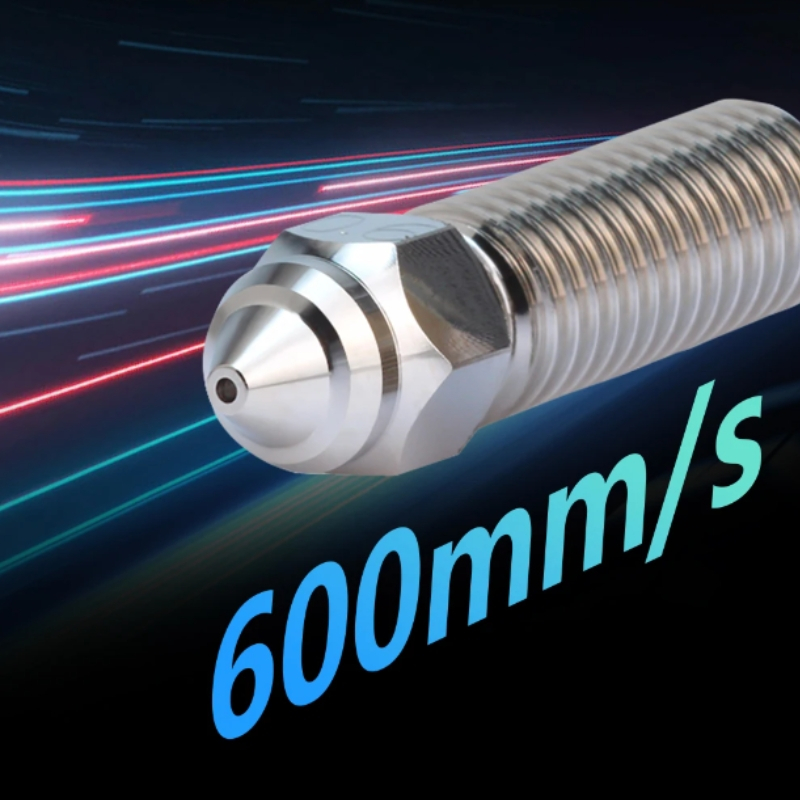 Esta boquilla de aleación de cobre ofrece una alta conductividad térmica y un flujo elevado para impresiones de alta velocidad.