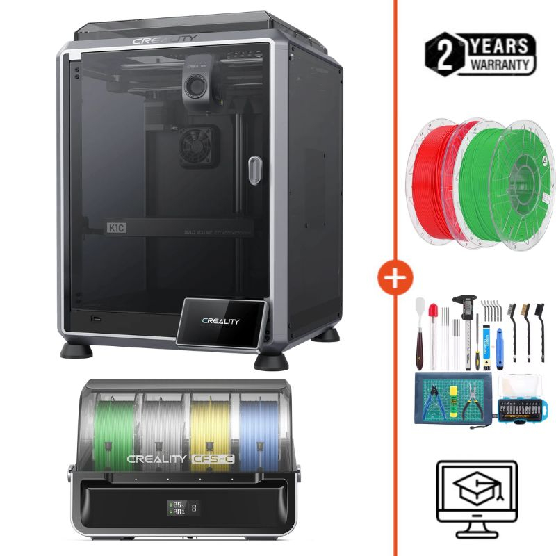 El Pack Starter Creality K1C 2025 + CFS-C te ofrece lo necesario para comenzar tus impresiones 3D tan pronto recibas tu equipo.
