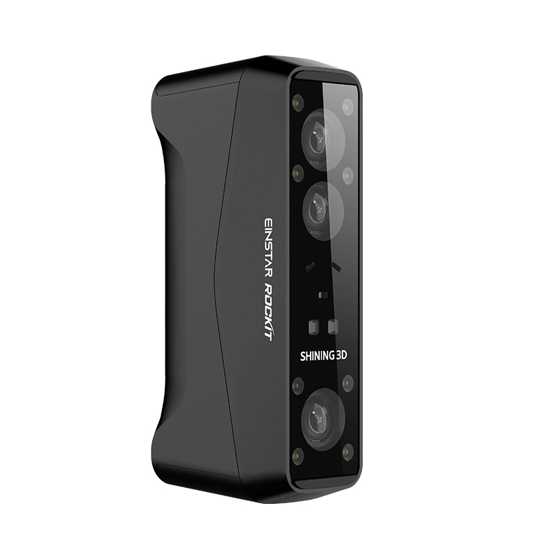 El Shining 3D Einstar Rockit es un escáner 3D portátil de nueva generación, que combina velocidad, precisión y total libertad gracias a su diseño inalámbrico. Su tecnología híbrida de láser azul + VCSEL infrarrojo permite capturar superficies complejas, oscuras o brillantes sin marcadores.