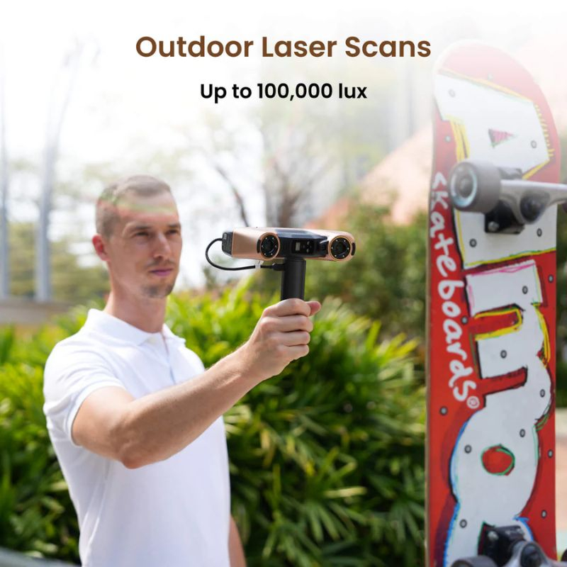 Funciona hasta 100.000 lux, permitiendo escanear al aire libre incluso bajo luz solar directa.
