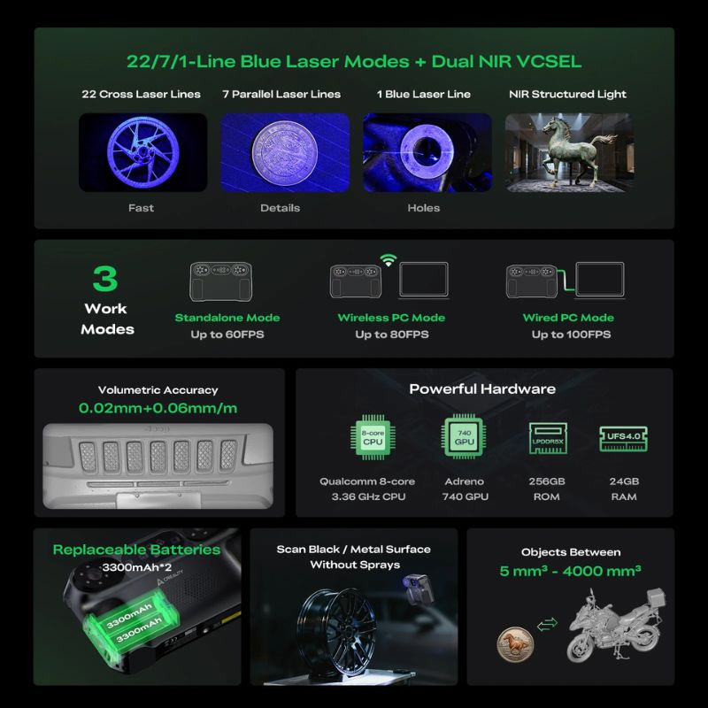 El Sermoon P1 combina precisión, velocidad y versatilidad en un formato profesional. Su amplio rango de escaneo, capacidad multi-tecnología y escaneo sin marcadores lo convierten en una herramienta indispensable para ingeniería, diseño industrial y archivado digital.