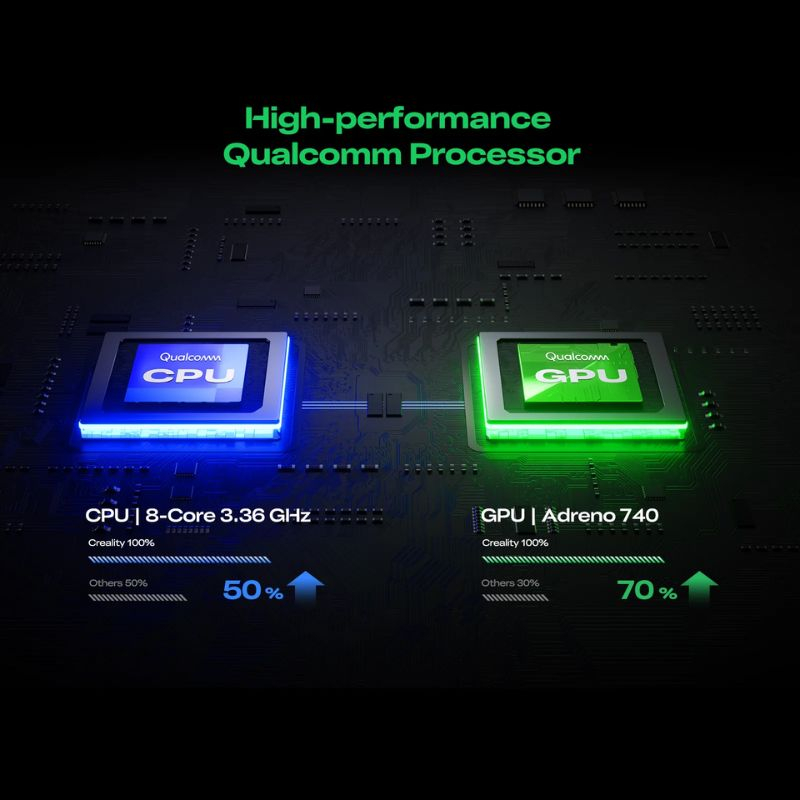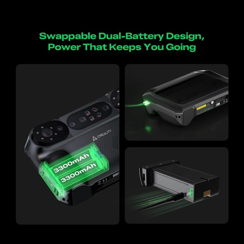 Equipado con dos baterías extraíbles, el Creality Sermoon P1 permite un funcionamiento ininterrumpido. La carga rápida alcanza el 80 % en solo 50 minutos, asegurando autonomía suficiente en el sitio.