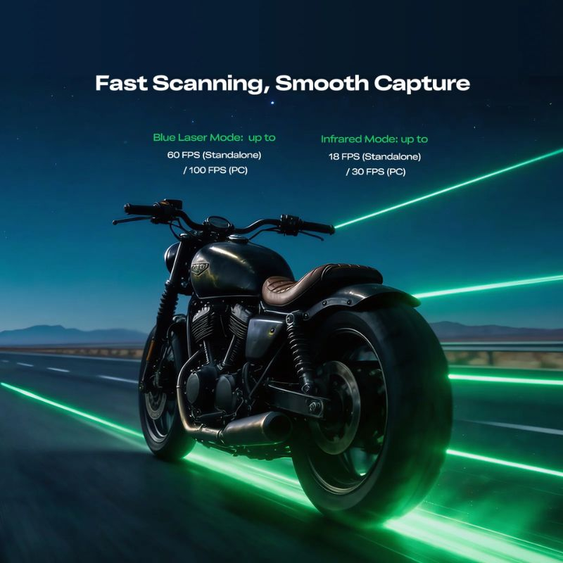 Adquisición de hasta 100 FPS en PC, asegurando escaneos rápidos y fluidos incluso para objetos grandes o complejos, optimizando tiempos de producción e inspección.