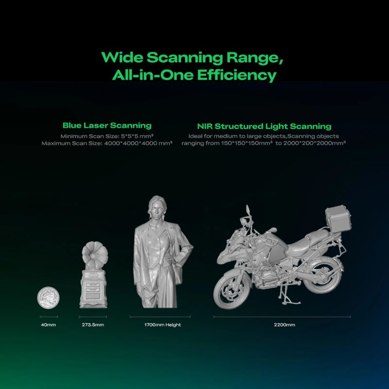 Combina láser azul y luz NIR para una captura eficiente de objetos de cualquier tamaño.