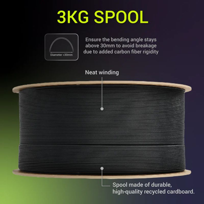 El Polymaker Fiberon™ PET-GF15 Negro es adecuado para usuarios que buscan un filamento estable y resistente al calor, fácil de imprimir con las precauciones correctas. Su baja sensibilidad a la humedad y compatibilidad con boquillas resistentes a la abrasión permite producir piezas fiables para aplicaciones técnicas.