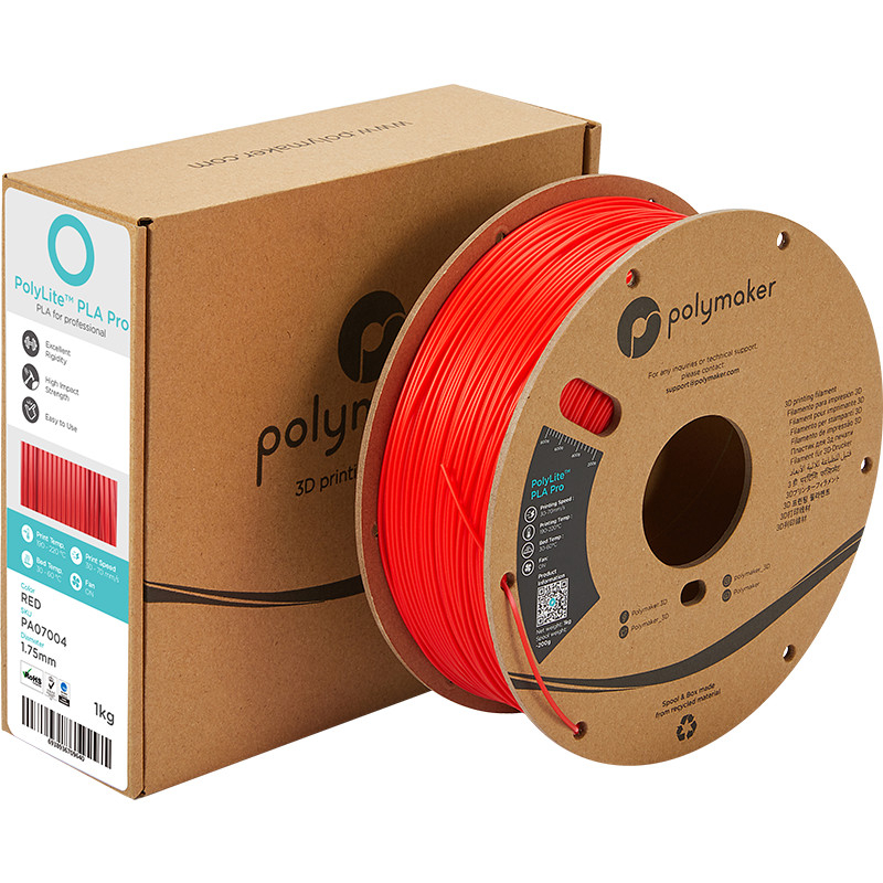 El filamento PolyLite™ PLA Pro es un material que se sitúa entre dos gamas de PLA ya existentes de Polymaker. El PolyLite PLA Pro Rojo ofrece alta resistencia a los impactos mientras combina la excelente rigidez del PLA y las otras propiedades de un PLA estándar.