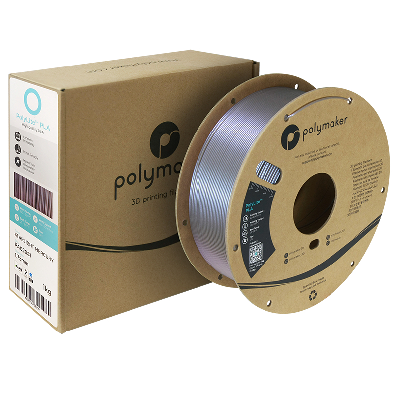 El PolyLite PLA Starlight Mercury de Polymaker es compatible con impresoras 3D de filamento de 1.75 mm.