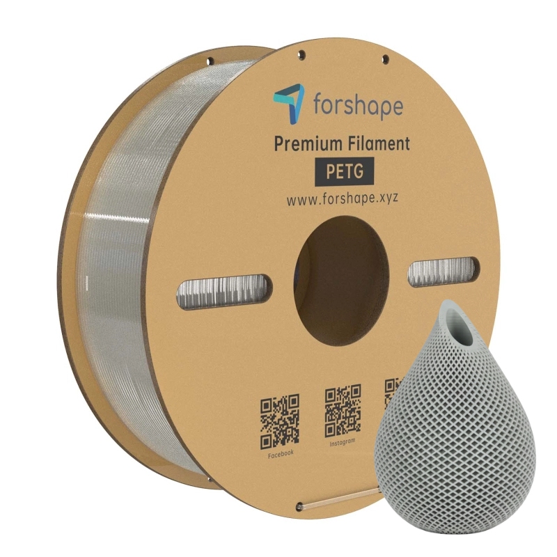 Translúcido: El PETG Forshape es un filamento premium translúcido que aporta una transparencia natural a las impresiones de paredes finas, difícil de lograr con otros materiales.