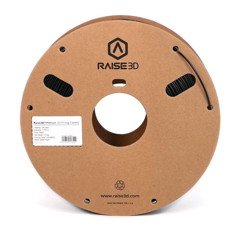 El filamento Raise3D Premium TPU-95A Negro es un filamento de calidad profesional que permite imprimir piezas y objetos que requieren elasticidad, flexibilidad y alta absorción de impactos. Ya configurado para un uso sencillo en su impresora Raise3D.