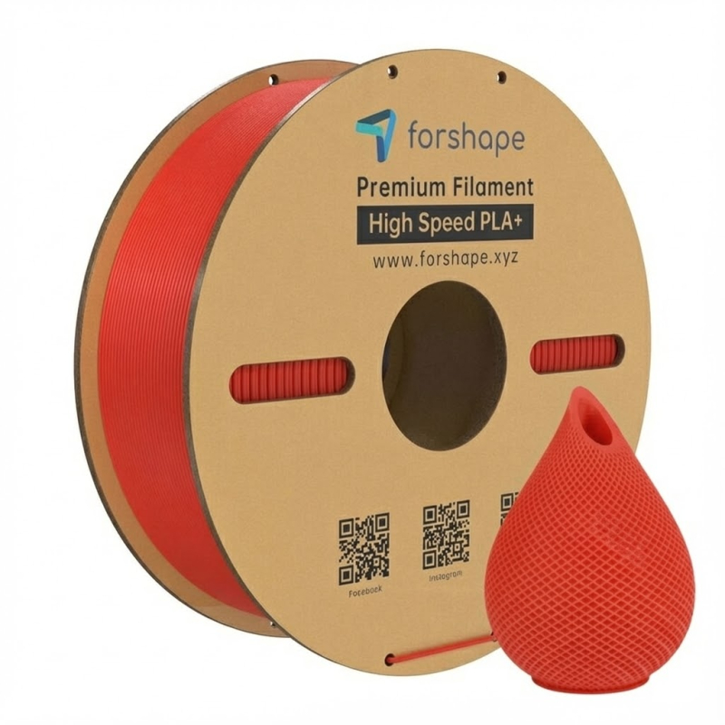 El filamento High-Speed PLA+ Forshape Rojo (PLA de alta velocidad) permite impresiones a velocidades de hasta 600 mm/s gracias a su formulación única que combina alta fluidez y enfriamiento rápido.