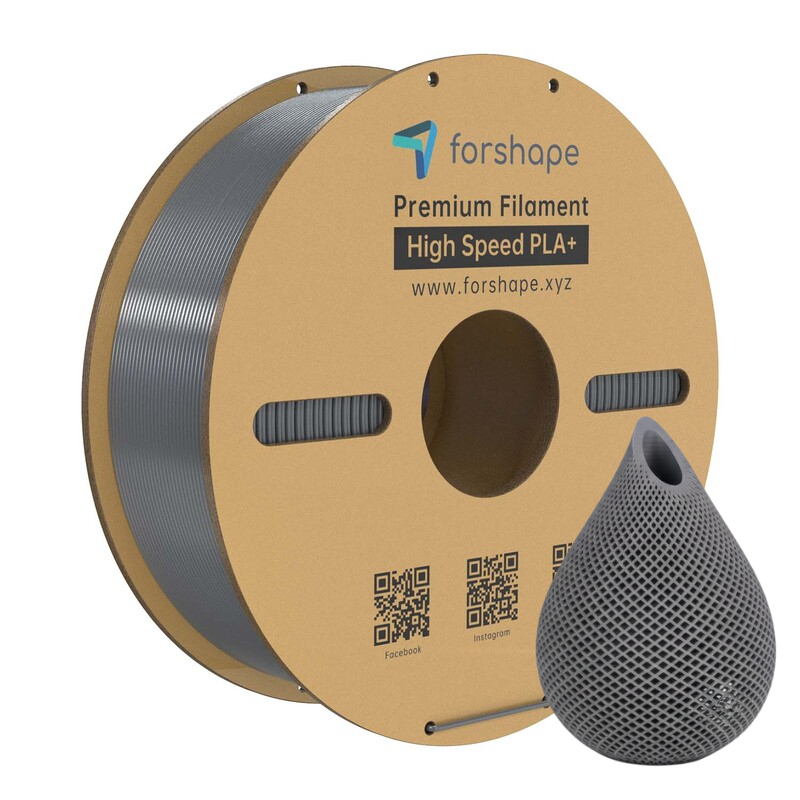 El filamento High-Speed PLA+ Forshape Plata (PLA de alta velocidad) permite impresiones a velocidades de hasta 600 mm/s gracias a su formulación única que combina alta fluidez y enfriamiento rápido.