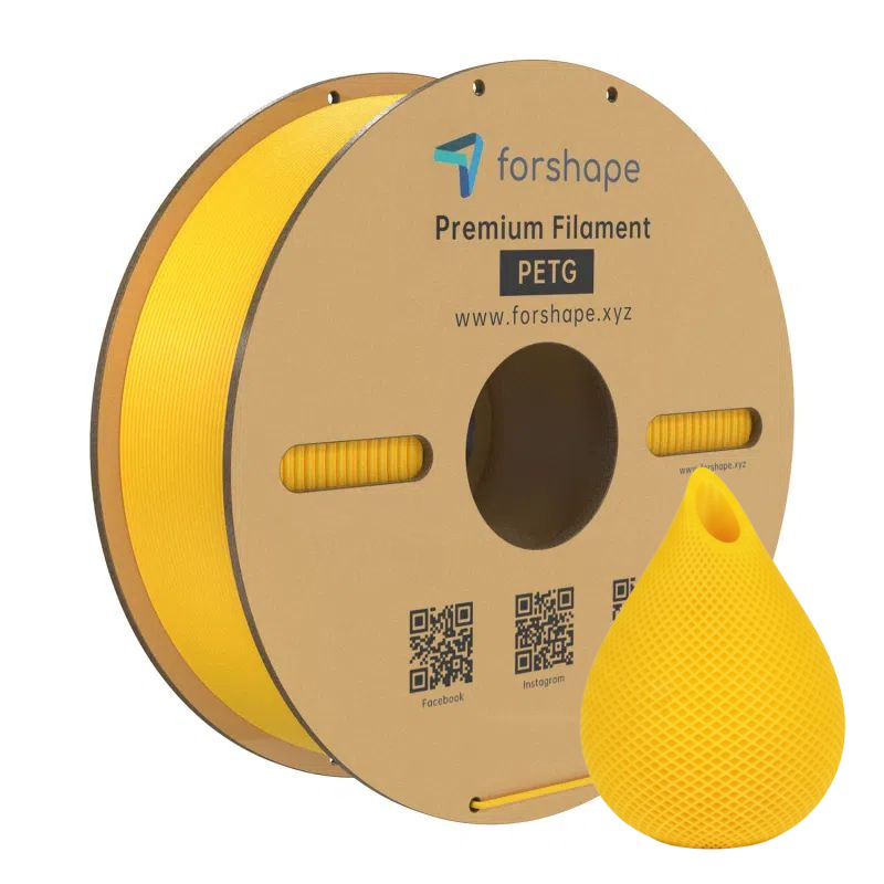 El filamento PETG (Polietileno Tereftalato Glicol) Amarillo 1.75mm de Forshape es un material 3D premium. Está enrollado en bobinas de cartón para reducir el impacto ambiental.