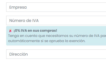 Solo tienes que indicar tu número válido y nuestro sistema aplicará automáticamente la exención de IVA.