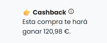 Si un producto es elegible, encontrarás en el apartado Precio la mención 👉 Cashback así como el importe asociado a ese producto.