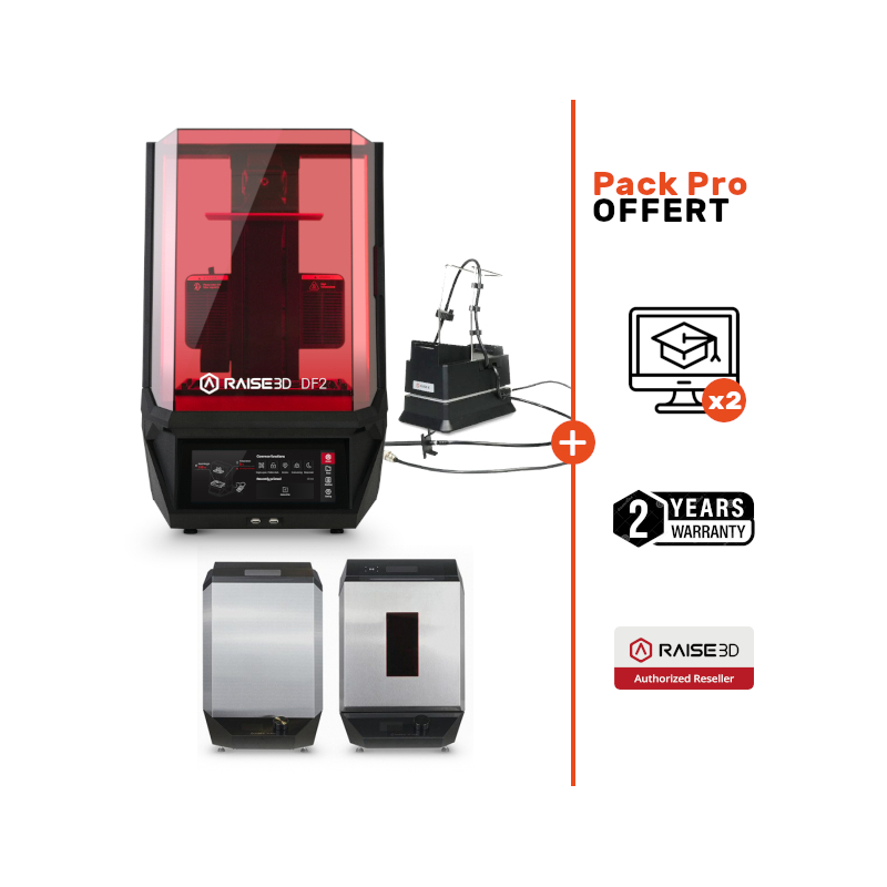 El Complete Package Raise3D DF2 le permite iniciarse en la impresión 3D en resina profesional con todas las herramientas necesarias para completar sus proyectos con éxito. La impresora 3D DF2 ofrece especificaciones técnicas impresionantes y es una opción confiable para tareas de impresión profesionales.