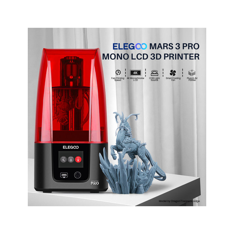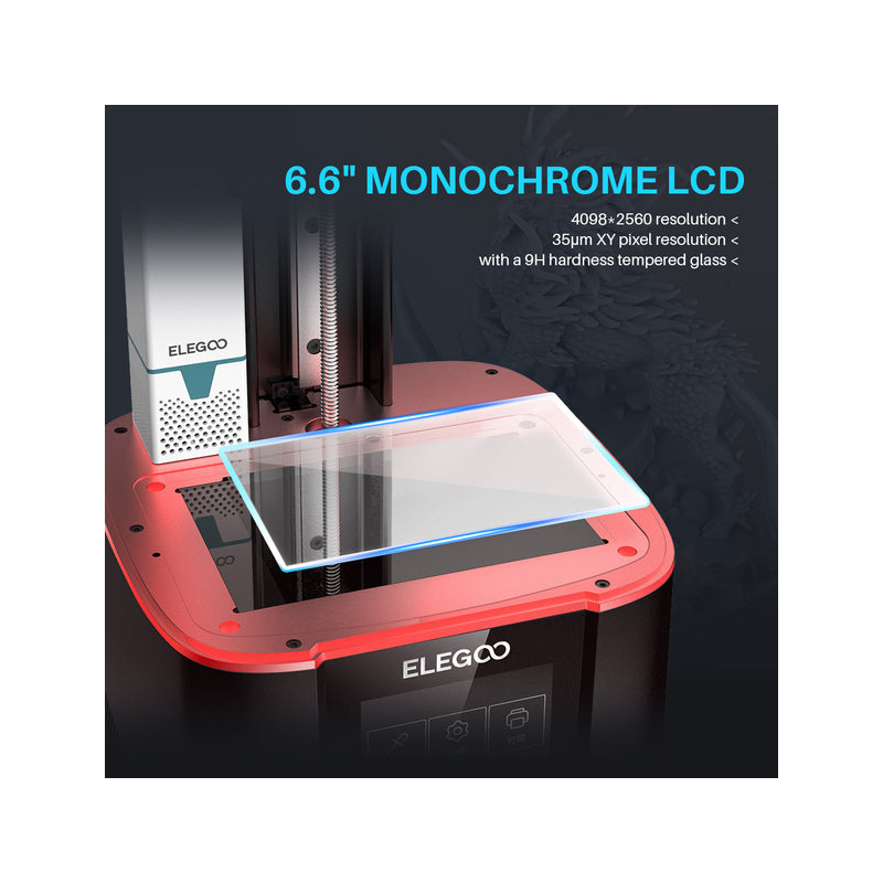 La ELEGOO Mars 3 Pro cuenta con una pantalla LCD mono 4K de 6,6 pulgadas con una resolución de 4098*2560 y una resolución XY de 35μm, que ofrece impresiones con gran detalle y precisión que superan con creces a las impresoras FDM en términos de calidad y velocidad.