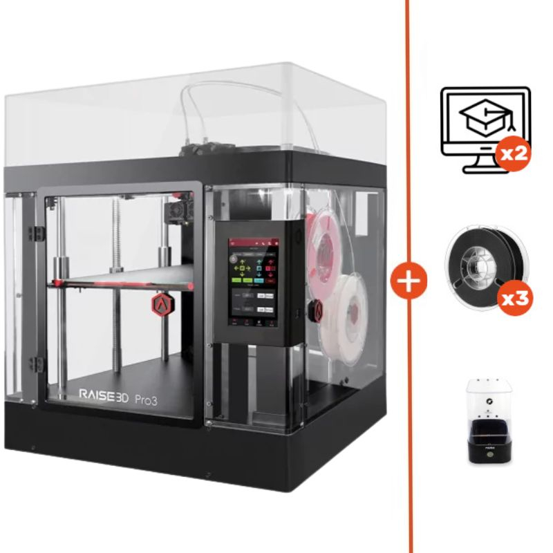 Su gran volumen de construcción y su fiabilidad convierten a la Raise3D Pro3 en una impresora profesional y de alto rendimiento. Su amplia compatibilidad con materiales estándar y técnicos permite imprimir piezas para aplicaciones diversas y exigencias técnicas elevadas.