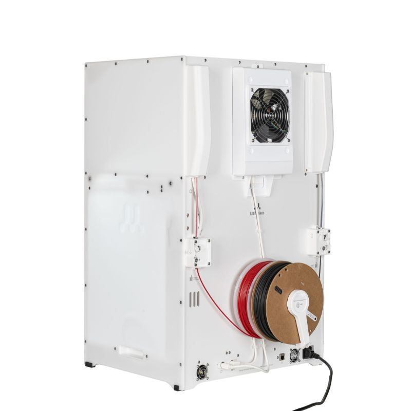 El UltiMaker S8 está equipado con un gestor de aire integrado que optimiza la gestión del flujo de aire y filtra hasta un 95 % de las partículas ultrafinas generadas durante la impresión. Este sistema no solo mejora la seguridad del usuario, sino que también asegura un entorno de trabajo más saludable.