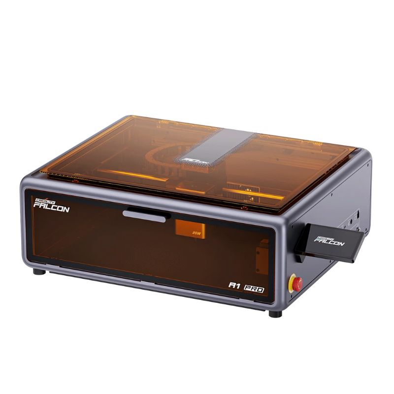 El Creality Falcon A1 Pro 20W es un grabador y cortador láser potente, compacto y seguro. Con su amplia área de trabajo de 358 x 268 mm, su sistema de autoenfoque inteligente ultrapreciso y su cámara HD integrada, garantiza un posicionamiento perfecto para cortes limpios y grabados precisos.