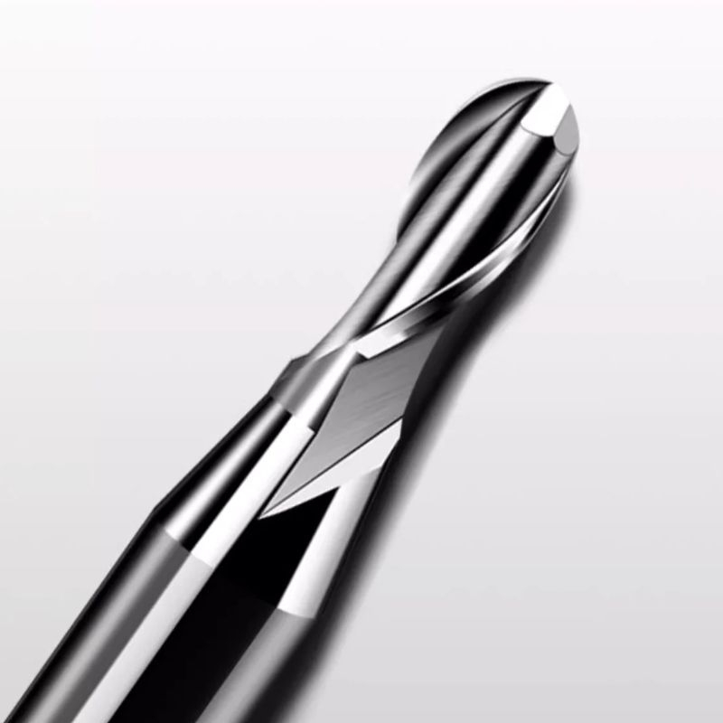 La fresa de dos flautas de punta esférica 2mm x 6mm Makera Carvera es una herramienta diseñada para el mecanizado de superficies 3D, contornos curvos y geometrías complejas en piezas de metal. Su diseño de dos flautas facilita la evacuación de virutas mientras mantiene un buen acabado superficial.