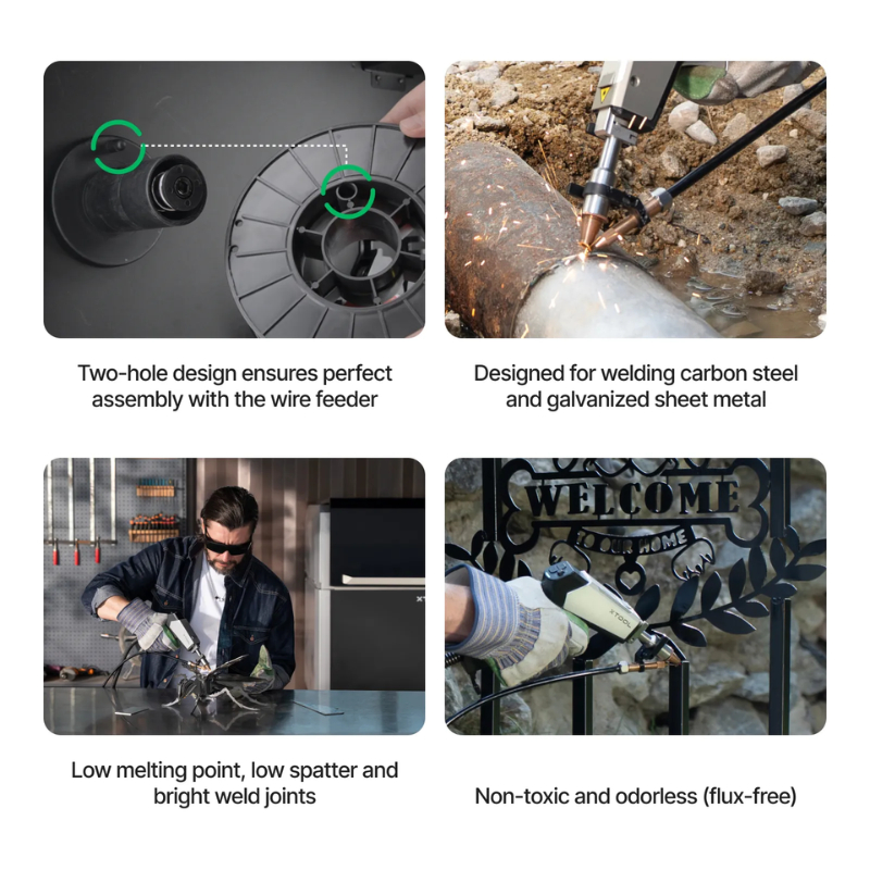 Este hilo de 1 mm de diámetro, disponible en una bobina de 5 kg, es ideal para procesos de soldadura láser xTool y otras aplicaciones que requieren precisión y consistencia. Es especialmente valorado en fabricación mecánica, construcción metálica y reparación industrial, donde la fiabilidad de la unión es esencial.