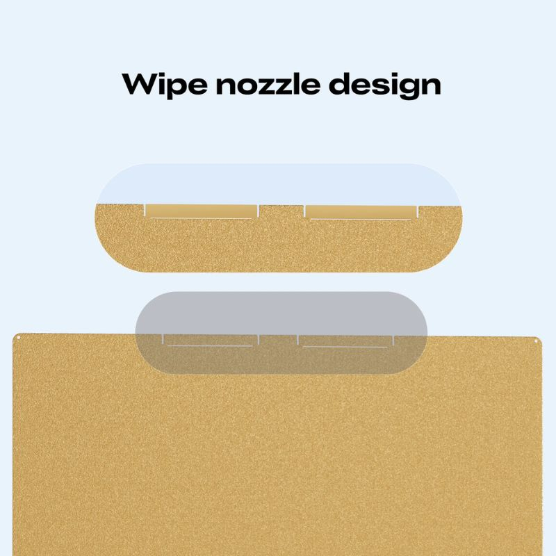 La placa también cuenta con un diseño "wipe nozzle" que limpia los residuos de la boquilla antes de imprimir, garantizando una primera capa limpia y uniforme.