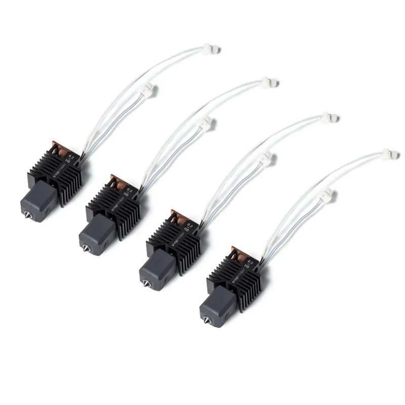 Este pack de cuatro hotends de 0,2 mm en acero endurecido ofrece máxima precisión para impresiones de Snapmaker U1 que requieren detalles finos. Cada hotend combina boquilla, bloque de calefacción y elemento calefactor en una sola unidad integrada para un reemplazo sencillo y confiable.
