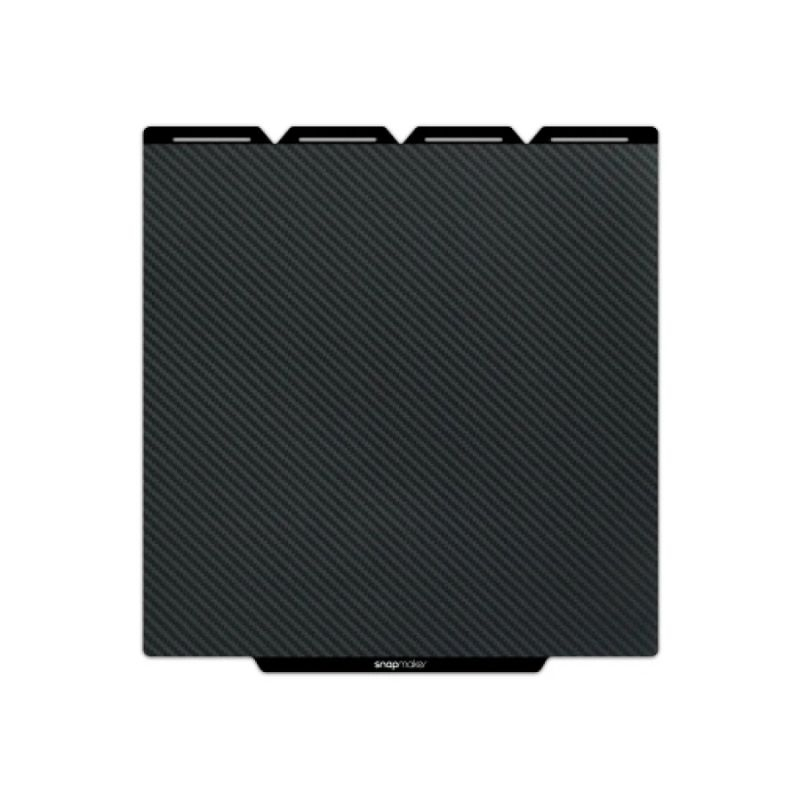 Esta plataforma efecto fibra de carbono es ideal para usuarios que buscan rendimiento, fiabilidad y estética en su Snapmaker U1, facilitando además la manipulación y retirada de las piezas impresas.