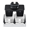 El adaptador facilita la alineación y el cambio de depósitos, mejorando la organización del flujo de trabajo. En conjunto, el sistema mantiene la impresora operativa sin interrupciones y favorece un entorno de trabajo limpio y seguro.