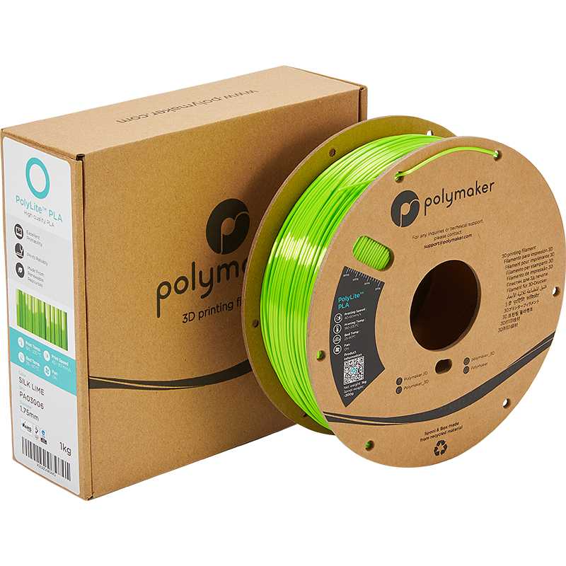 PolyLite Silk PLA Lima es un filamento PLA brillante con un efecto satinado y sedoso. Su aspecto distintivo y su facilidad de impresión lo hacen ideal para figuras y objetos decorativos.