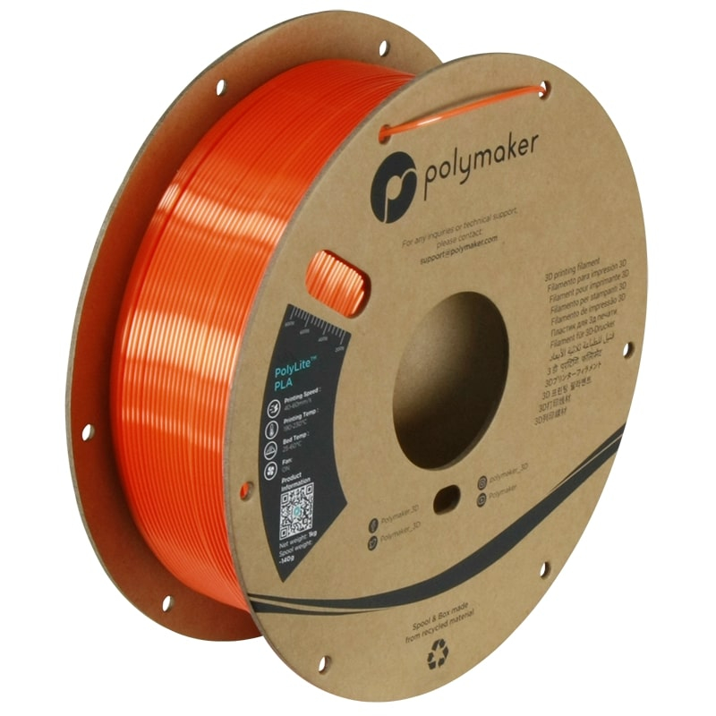 El filamento PolyLite PLA Silk Naranja es un tipo de PLA que ofrece un acabado brillante tipo Silk.