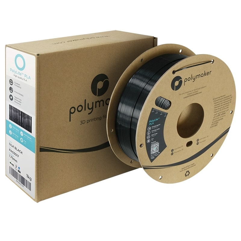 PolyLite Silk PLA Negro es un filamento PLA brillante con un efecto satinado y sedoso. Su aspecto distintivo y su facilidad de impresión lo hacen ideal para figuras y objetos decorativos.