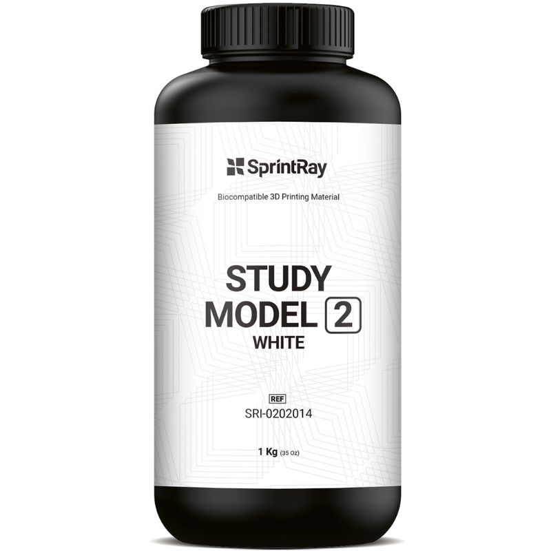 La resina SprintRay Study Model White 2 es el resultado de una fórmula especial de materiales que ofrece un color, una claridad y una velocidad de fabricación excepcionales (impresión de un modelo en 17 minutos).