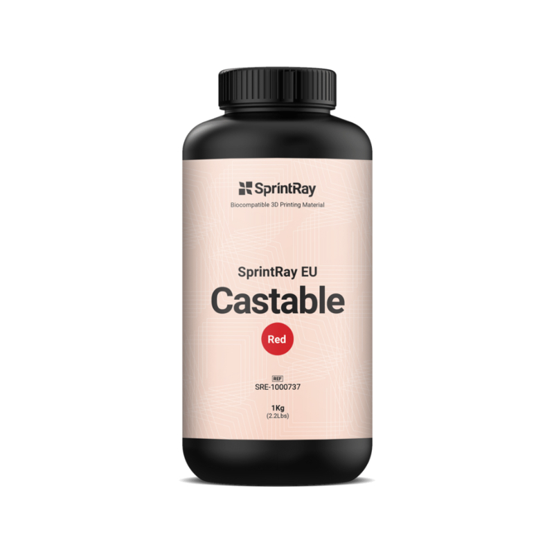 La resina Castable EU de SprintRay le permite imprimir rápidamente y con precisión modelos destinados a la fundición a la cera perdida. Este material es fácil de manejar y no deja ningún residuo después del proceso de cocción.