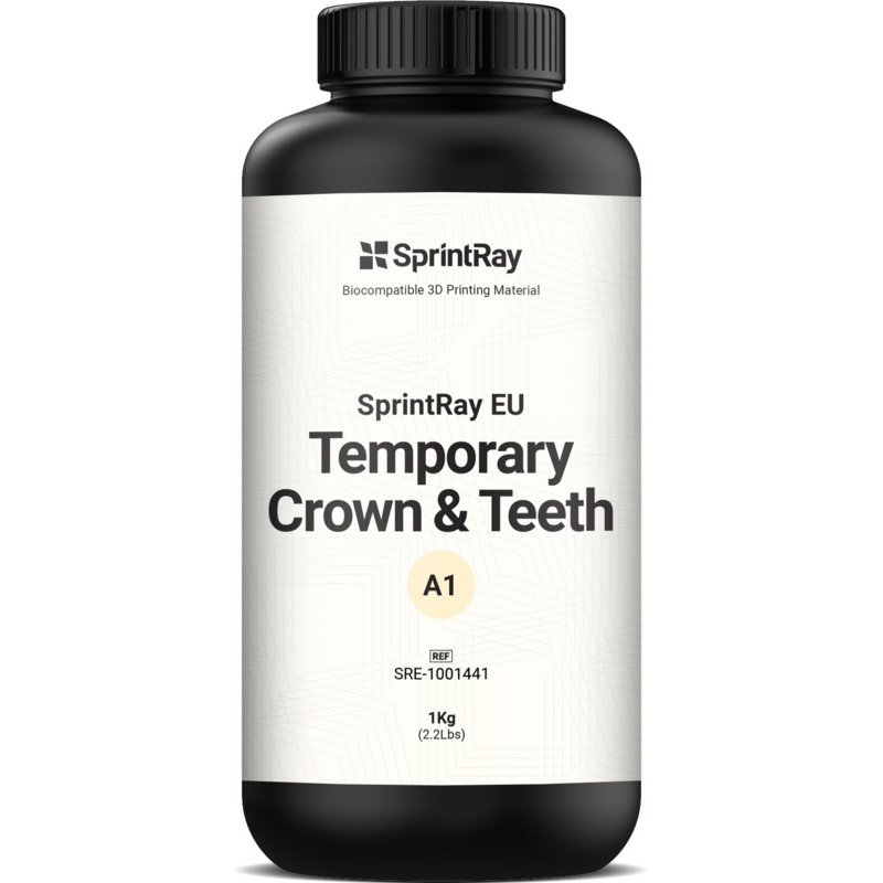 La resina EU Temporary Crown & Teeth A1 SprintRay es el material ideal para la fabricación rápida de coronas, puentes temporales y dientes protésicos estéticos y resistentes.