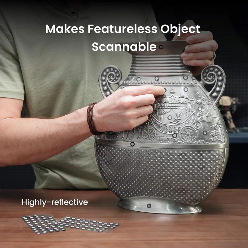 Perfecto para profesionales y aficionados a la digitalización 3D, prototipado rápido o modelado, este kit de 500 marcadores ofrece una solución fiable para obtener escaneos precisos y reproducibles en cada uso.