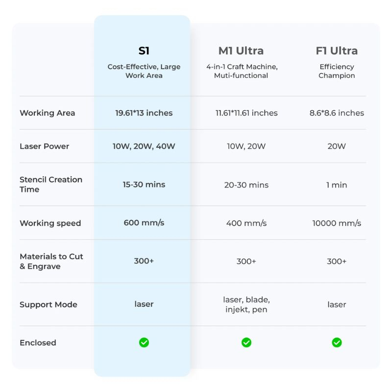 La xTool Screen Printer se apoya en la precisión de una máquina láser xTool (se vende por separado) para crear las plantillas. Para los modelos P Series y M1, es necesaria una base elevadora.