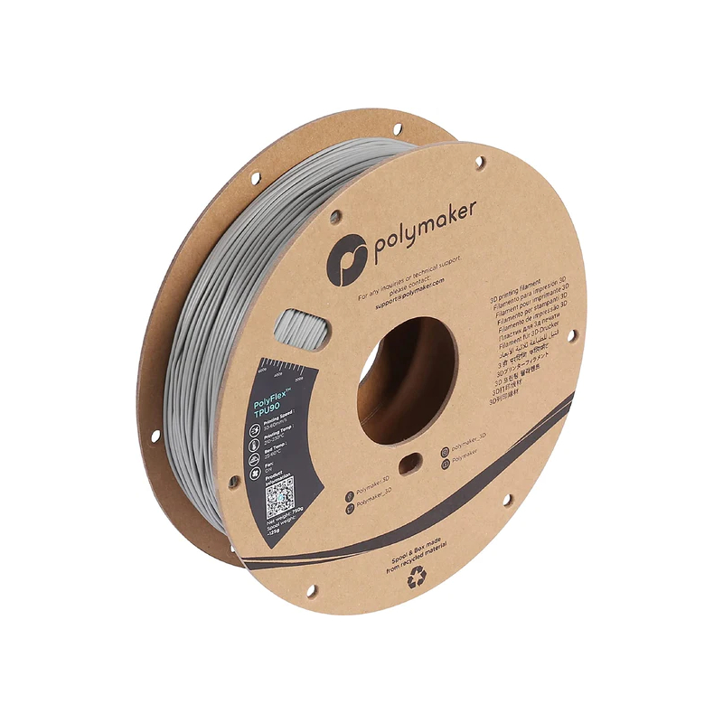 PolyFlex TPU-90A Gris de Polymaker es un filamento muy flexible a base de Addigy™. Ofrece gran resistencia al desgarro y a los rayos UV, y es fácil de imprimir.