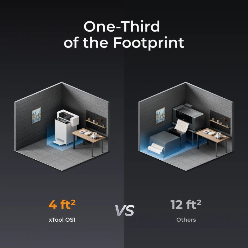 Con solo 1,2 m² de espacio, el xTool OS1 ocupa un tercio del lugar que necesitan las máquinas competidoras.